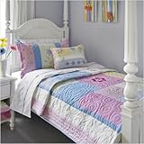 [***INCLUDED IN THIS SET: (2)Daisy Chain Quilt, (2)Daisy Chain Quilt Sham] Size: Twin Features: -Available in Twin, Full, and Queen sizes. -Quilt. -Pink, blue and yellow color theme with floral motif. -Reverses to pink gingham and has a clean blue piped edge. -Material: 100pct cotton. -Quilt coordinates perfectly with the comforter print using a variety of yarn-dye ginghams, stripes and then embroidered over with floral patterns. -Crisp white teams with multi colored spirals making a very versatile sheet that will coordinate with a variety of decors. -Quirky 3 dimensional floral novelty cushions complete a timeless design for all ages. -Encourages rest and appeals to both kids and parents alike. -Machine washable.